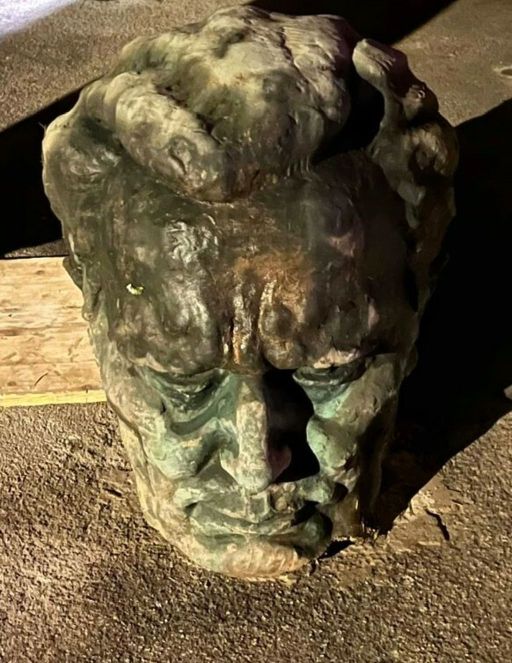 Vandal nije uspio daleko pobjeći. Slovenska policija pokrenula je potragu, a građanin je ubrzo dojavio da je u blizini Glazbene škole Velenje primijetio muškarca kako u automobil Škoda Kodiaq utovaruje veliki metalni predmet. Policija je stigla na mjesto i zaustavila 49-godišnjeg vozača. U prtljažniku su pronašli brončanu glavu skulpture.