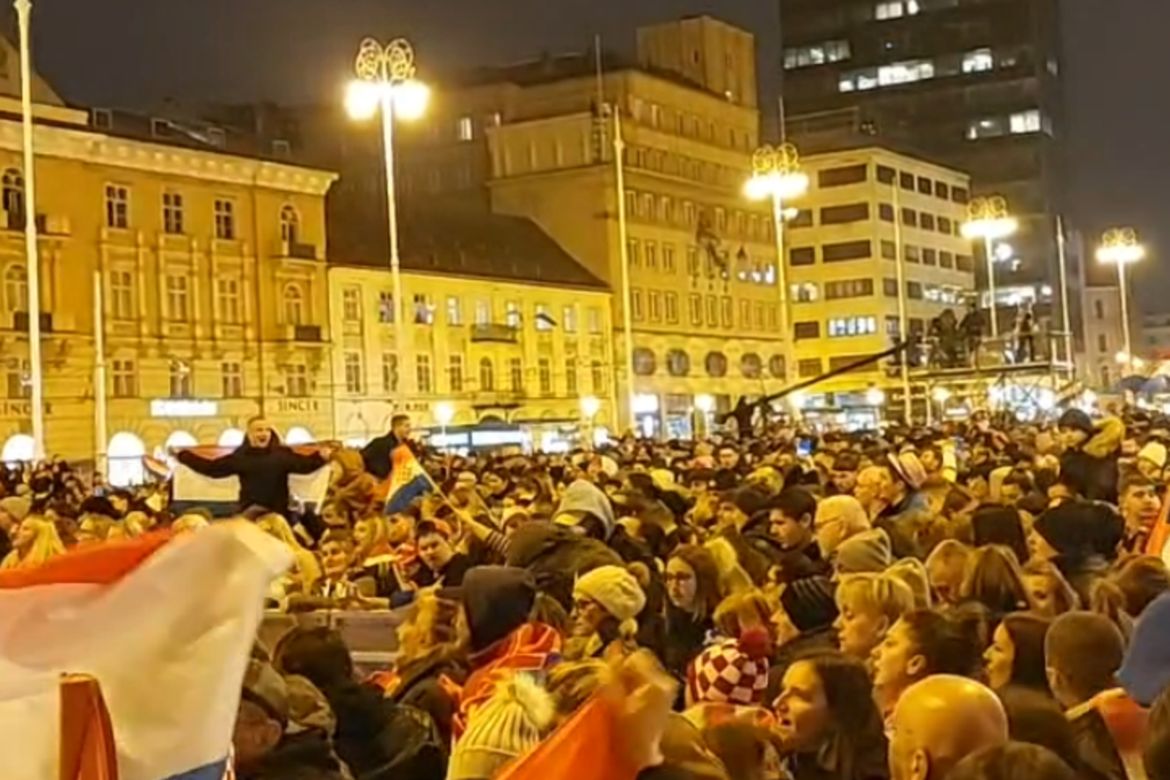 Na glavnom trgu veselo, ali viju se i zastave s grbom na kojem je prvo bijelo polje… Ima dosta policije…