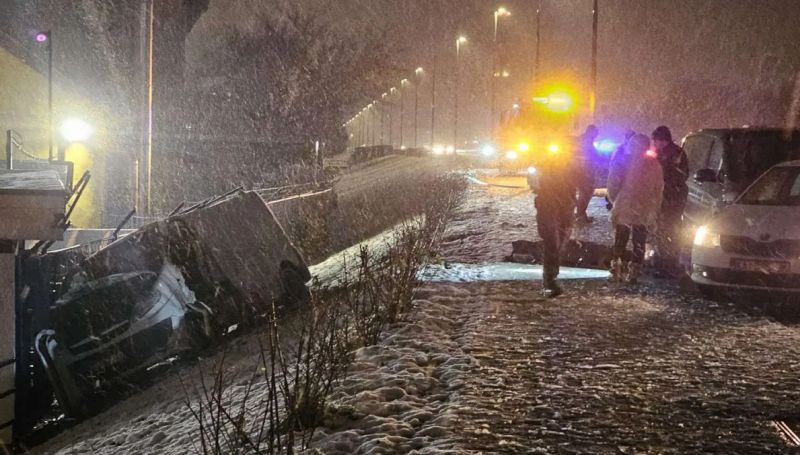 Teretnim automobilom karlovačkih registarskih oznaka upravljao je 52-godišnjak koji se kretao Prilazom Većeslava Holjevca od smjera Ulice kralja Tomislava u smjeru Ulice Ante Starčevića te je prilikom prestrojavanja iz lijevog u desni kolničkog trak, zbog neprilagođene brzine, izgubio nadzor nad vozilom te u zanošenju vozilom sletio udesno izvan kolnika i udario u metalni rasvjetni stup, zatim sletio niz zemljanu strminu koja je 4 metra niža od razine kolnika nakon čega je udario u metalnu panel ogradu.